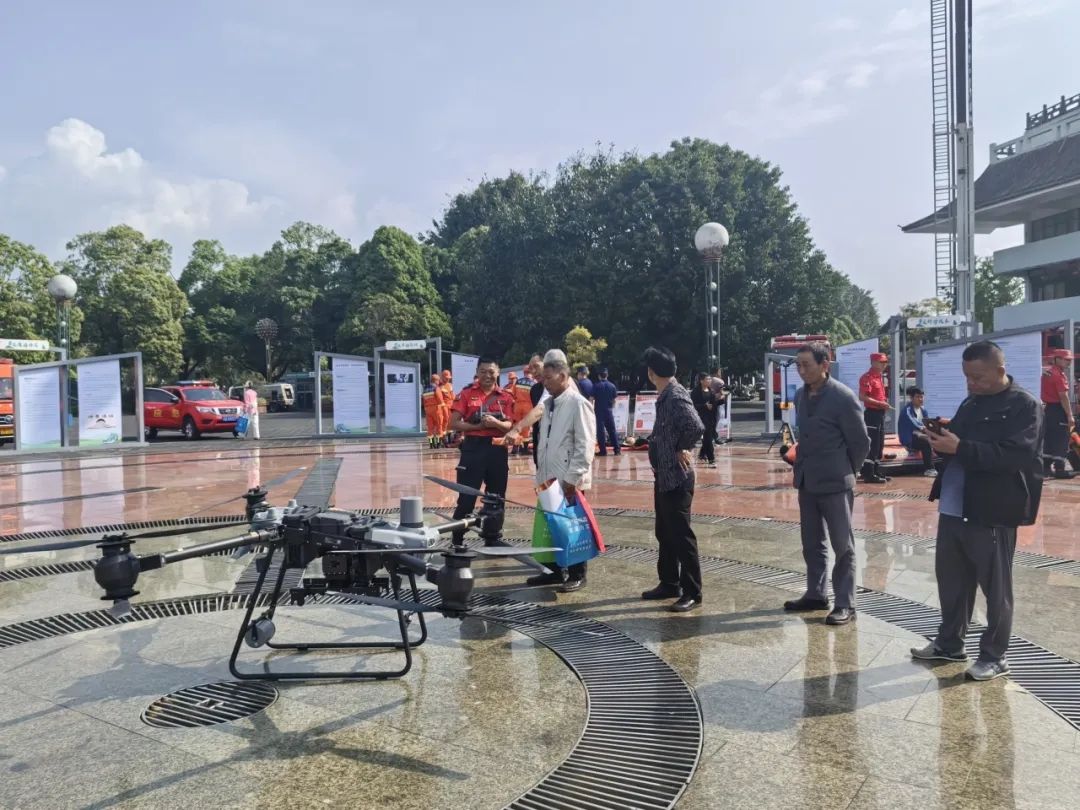腾冲市应急救援大队杨建龙向市民介绍,“这台大疆F730运载无人机的主要作用就是在小范围火灾的情况下,运载着灭火的水、灭火弹,实施小范围的灭火;其次是在发生自然灾害的情况下,车辆不能到达现场,可以用运载无人机运载食物和饮用水,解决灾害形成的一些紧急情况。”