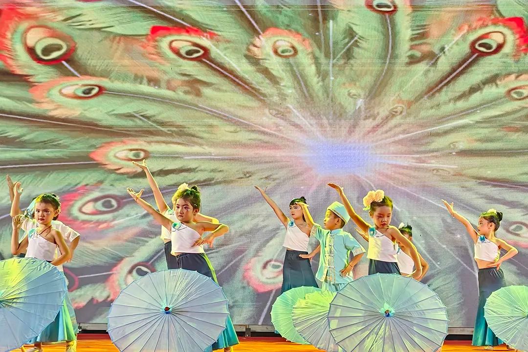 晚上18:30,勐统镇新城的傣族同胞们跳起传统舞蹈“嘎光”,从“木瓜尖坡”沿街行至开幕式现场。“嘎光”是傣族在喜庆佳节中的传统祈福之舞,象征吉祥与美好。沿途群众纷纷加入队伍,锣鼓喧天、舞姿翩跹,迅速点燃了全场热情。随着“勐统镇第三届‘甜笋节’正式开幕”的宣布,大家兴致勃勃涌入琳琅满目的展销区,挑选心仪特产。