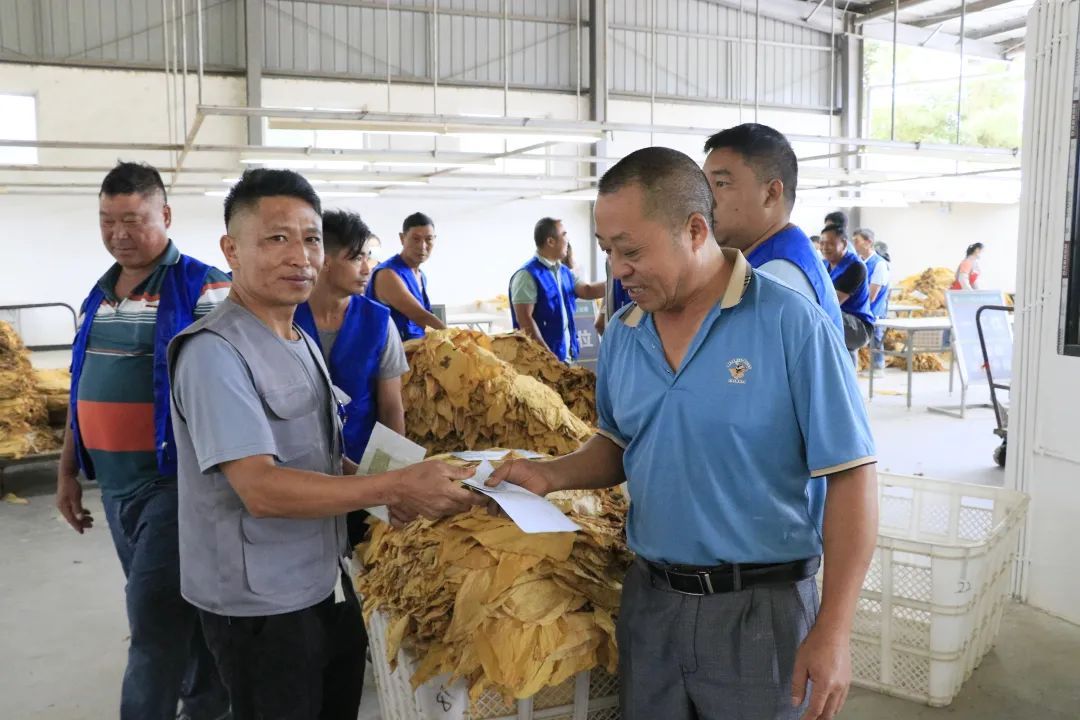 据统计,收购首日全乡收烟13.5吨,均价23元/公斤;2025年全乡烤烟种植面积8145亩,预计总产量22500担,将带动700余户烟农增收3800余万元,让烤烟成为村民致富“金叶子”。