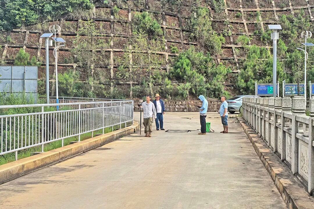 长岭岗水库位于昌宁县田园镇达仁村,设计总库容880万立方米,是一座小(一)型水库,灌溉面积达2.87万亩,在全县灌溉、供水、防洪等方面发挥着不可或缺的作用。“保障大坝的安全稳定是我们义不容辞的责任,组织开展此次安全鉴定工作十分重要,而物探勘察是此次安全鉴定工作中关键的一环,可以查明隐蔽性的地质问题。”长岭岗水库现场管理员吉富强说。