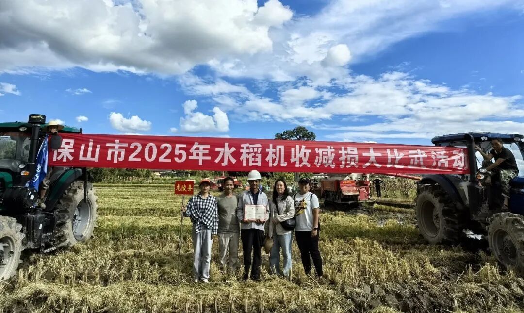 10月14日,保山市2025年水稻机收减损大比武活动在腾冲市滇滩镇胜利社区稻田拉开帷幕,全市5个县(市区)共10位选手参加比赛,由龙陵县推荐的勐糯镇大寨村选手石家良凭借熟练、精湛的操作技能和高超的机收减损能力,荣获“保山市2025年水稻机收减损大比武活动”二等奖。