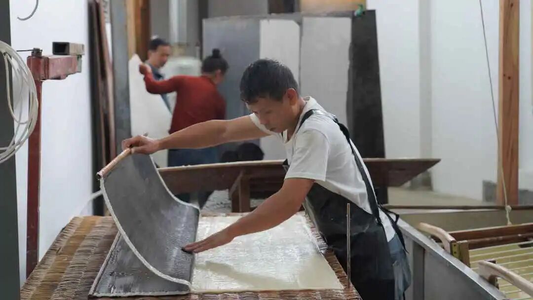 文旅融合为朝阳村开拓了发展“新赛道”。在腾宣研学馆内,手艺人正手把手教小学生抄纸,“用力一定要均匀”的叮嘱声不绝于耳。近年来,朝阳村深挖文化底蕴,将饵丝、豆腐工坊及古法宣纸制作工艺转化为“研学课堂”,打造“生产观摩+研学体验+文化讲解”的特色项目。“8月开业至今,已接待10多批研学团队,最多时一天有400多个孩子体验,后续还会增加拓印项目。”研学馆负责人左明建介绍。街道以朝阳村为核心,串联公路沿线万华馆、汽车博物馆等资源,形成“文化体验+乡村休闲+田园风光”的旅游路线,辐射洞山片区。黄金周期间,永乐村乐诚居民宿一房难求,民宿姚老板笑着说:“游客来体验文化、看田园风光,我们在家就能挣钱,日子越过越舒坦!”