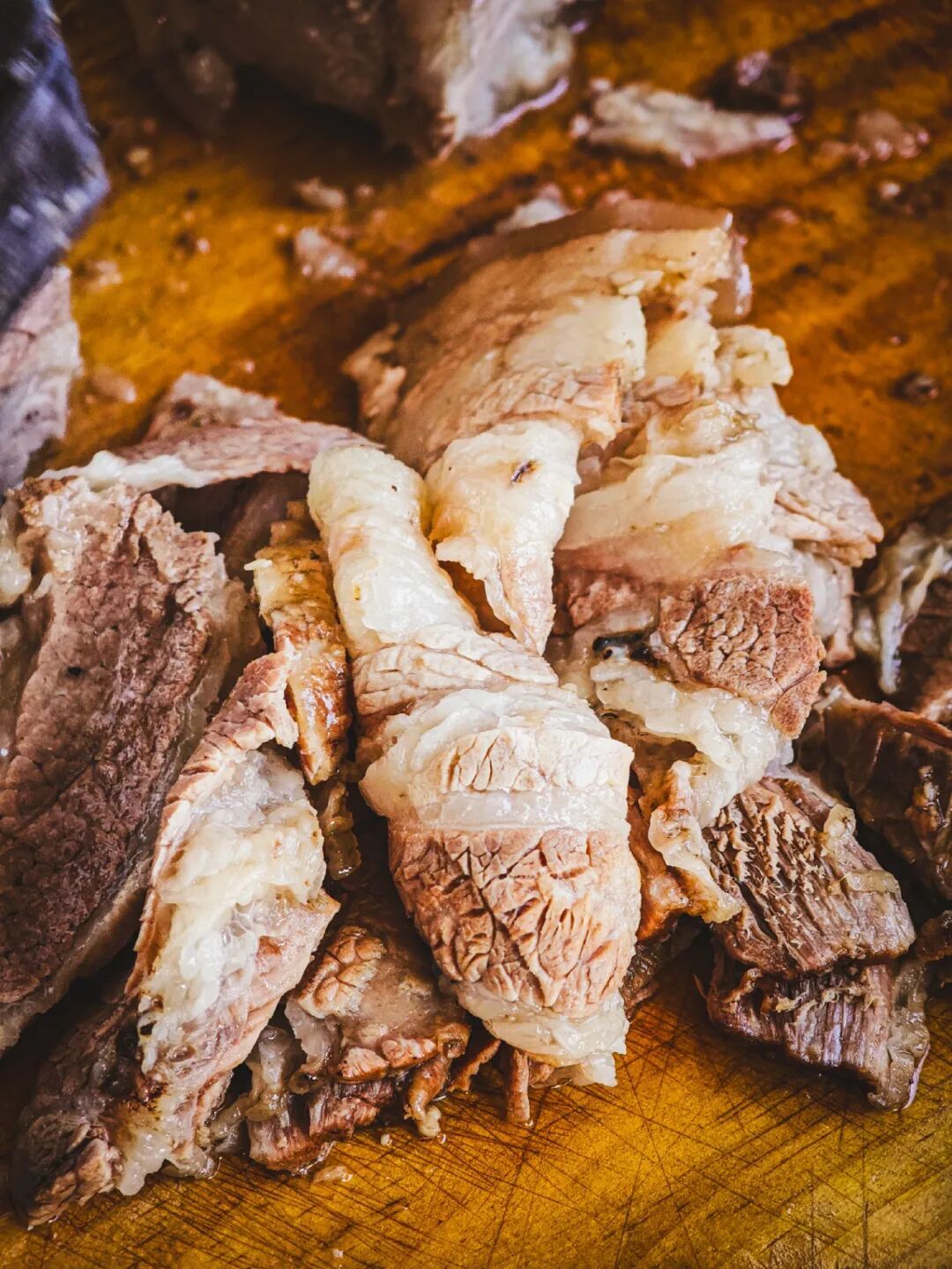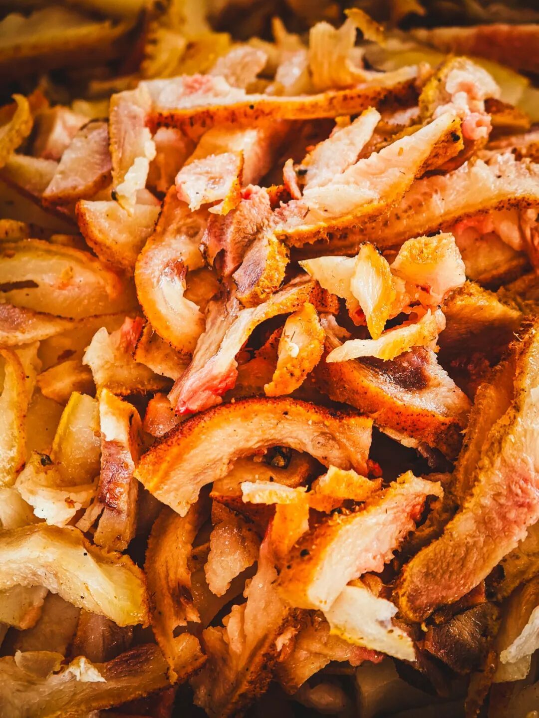 作为年猪饭的“压桌菜”,白片肉的做法看似简单,却最考验食材与火候。精选年猪五花肉,经清水慢煮至肉质软烂,捞出后切成薄片,肥瘦相间、纹理清晰。无需复杂调味,仅搭配一个简单的蘸水,入口肥而不腻、瘦而不柴,自带猪肉的鲜香本味,一口下去满口脂香,是施甸年猪饭不可或缺的经典菜品。
