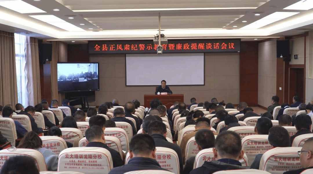 12月10日,龙陵县召开正风肃纪警示教育暨廉政提醒谈话会议,深入学习领会习近平总书记关于加强党的作风建设的重要论述,持之以恒落实中央八项规定精神,进一步深化以案促改、以案促治,引导党员干部筑牢拒腐防变思想防线,为龙陵高质量发展提供坚实作风保障。县委书记牛永东主持会议并开展廉政提醒谈话。李永标、马从晓、李永、赵兴灿等在家的县级领导参加会议。