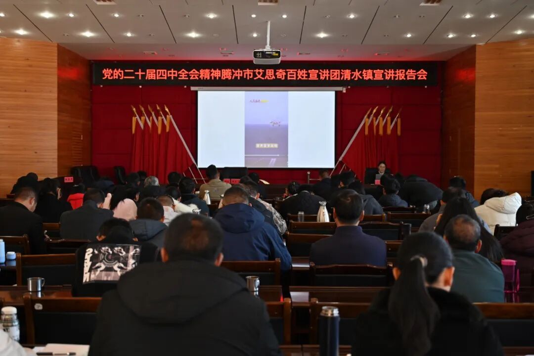 12月22日,腾冲市委党校讲师、艾思奇百姓宣讲团成员胡小松到清水镇开展专题宣讲,清水镇全体干部职工、驻村工作队员及各村党组织书记齐聚会场,共学理论精髓,把党的创新理论转化为指导实践、推动发展的强大动力。
