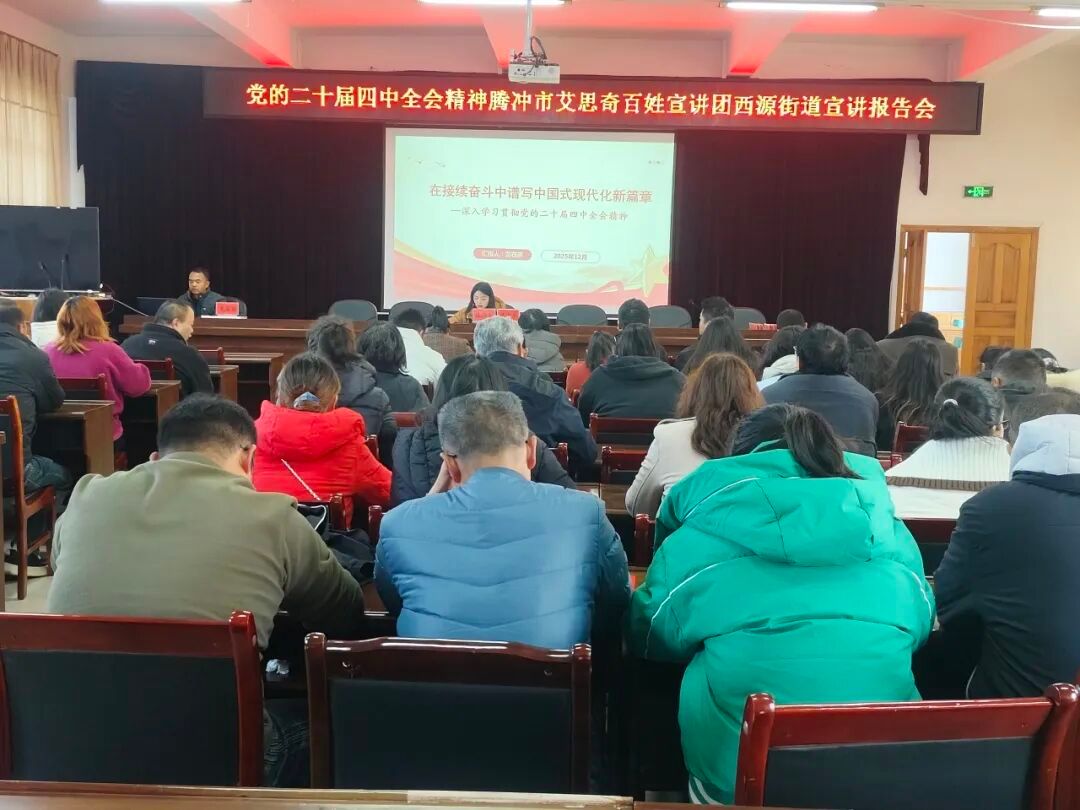 为深入学习宣传贯彻党的二十届四中全会精神和《习近平谈治国理政》第五卷,推动党的创新理论在基层落地生根。连日来,腾冲市艾思奇百姓宣讲团成员深入到全市各乡镇(街道)开展党的二十届四中全会精神宣讲,将《习近平谈治国理政》第五卷内容与学习贯彻党的二十届四中全会精神结合起来,并紧密联系腾冲经济社会发展实际,深受当地干部群众欢迎。