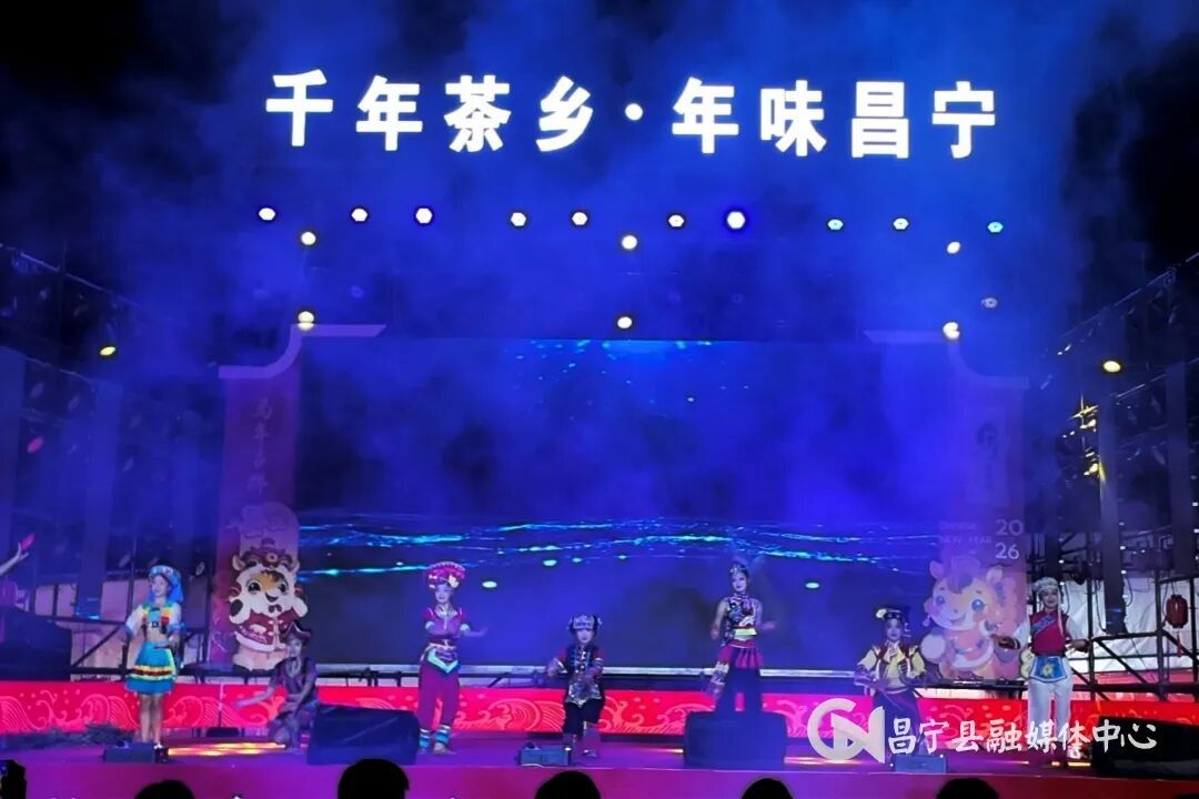 1月17日晚,昌宁县田园镇茶马古镇灯火璀璨、人声鼎沸,2026年“千年茶乡・年味昌宁”年货节开幕式暨文艺演出晚会在这里举行。随着绚烂的烟花划破夜空,这场以“寻年味、享年趣、赏年俗、购年货”为主线的新春嘉年华正式拉开帷幕,为市民与游客献上了一场集文化体验、互动娱乐与惠民消费于一体的年味盛宴。