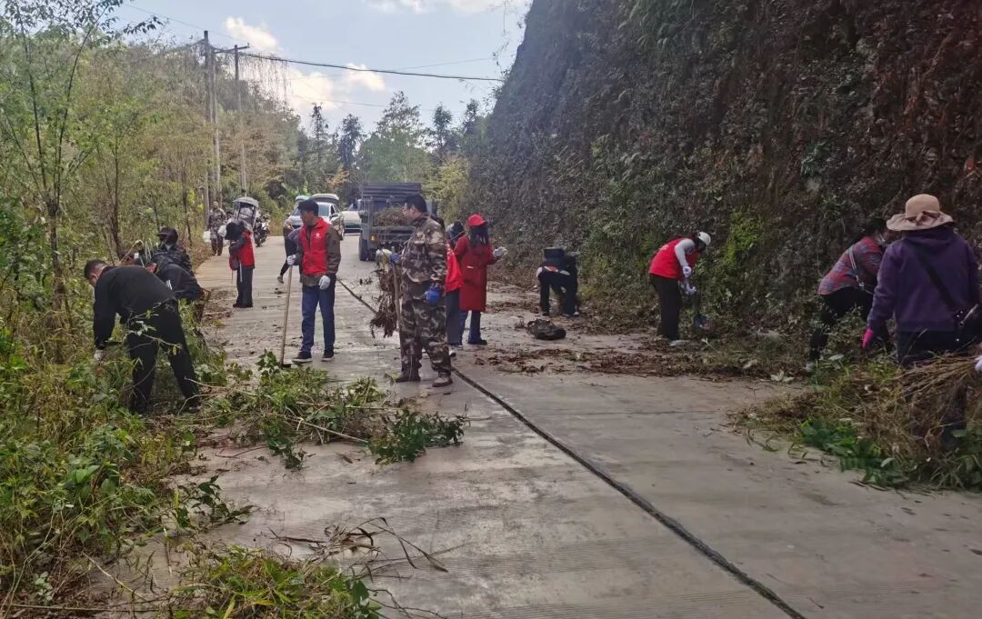 1月16日,龙陵县龙山镇组织镇干部职工、白塔社区及云山社区党员代表、志愿者共170余人,开展路域环境集中整治行动。