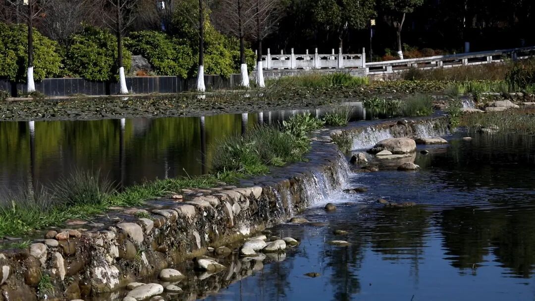 通过跌水坝把水位提高,增加了水动力。跌水过程也是一个增氧曝气的过程,对补给水源起到了一定的净化作用。