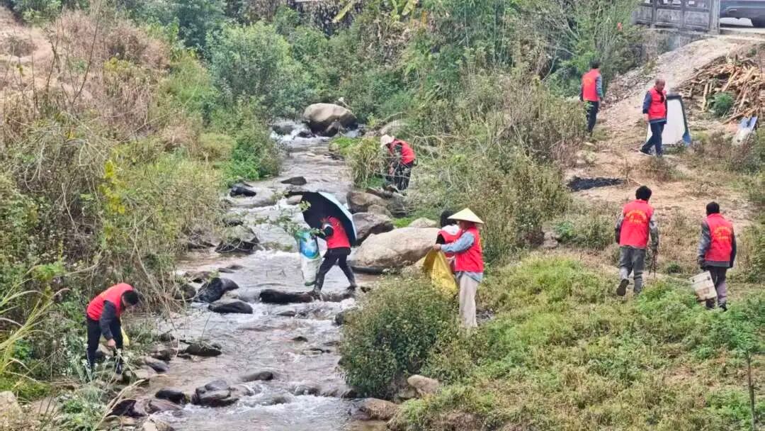 本次行动组织乡村两级干部职工、志愿者、保洁队伍及沿岸群众共同参与,大家手持垃圾钳、打捞网、垃圾袋等清障工具,沿河道分段开展作业,重点清理沿岸生活垃圾、枯枝杂草及河道障碍物,并请专业打捞队伍对水面漂浮物进行集中清理,确保整治不留死角、不漏一处。c