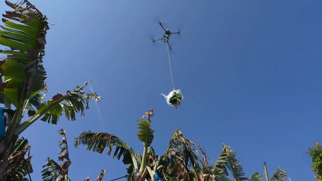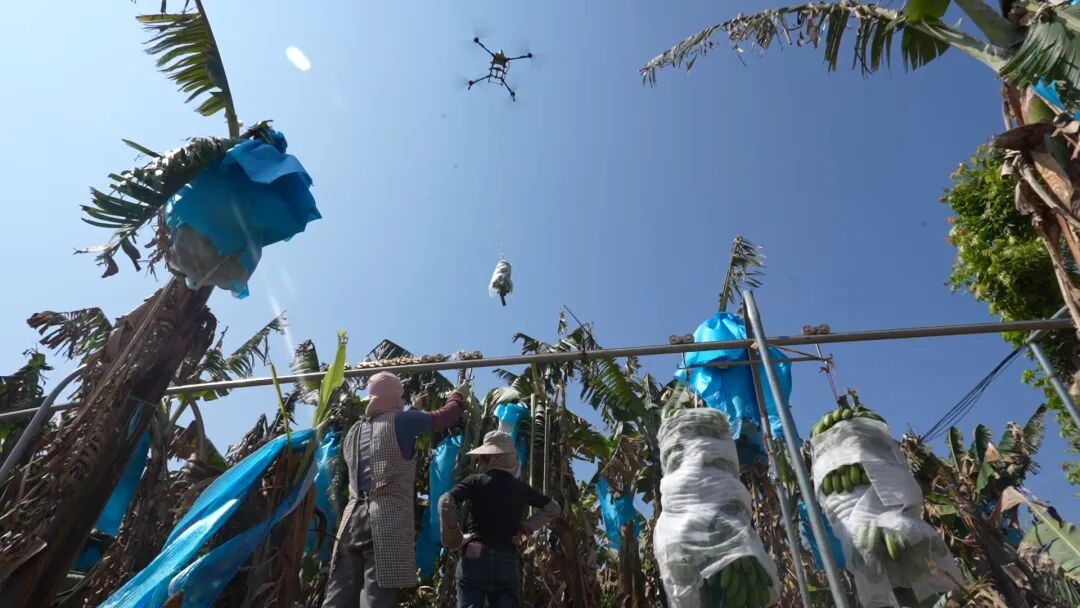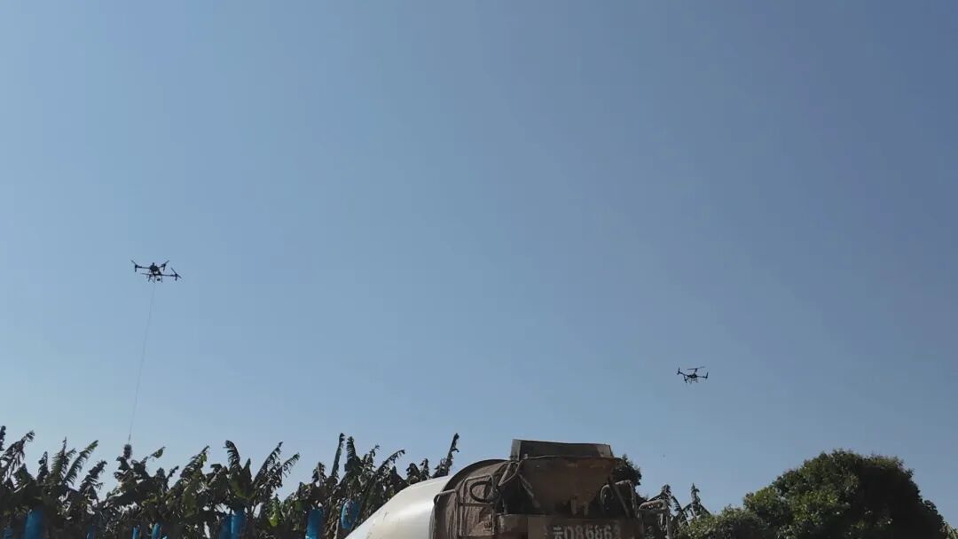 现在我们把无人机引进之后,大力发展低空经济,既能节约运输和人工成本,又能大幅提高运输效率,让山里的优质农产品更好地下山。通过打造空中运输走廊,把我们的特产香蕉销往全国市场,杨柳乡正以低空运输新动能助力特色产业发展,全面夯实乡村振兴根基。