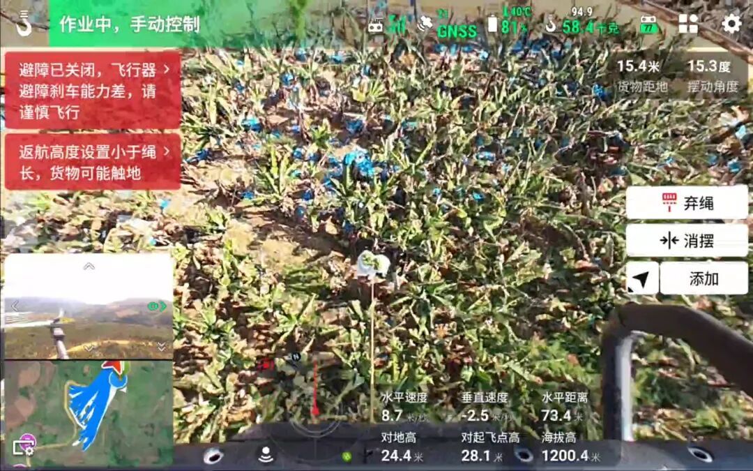 为破解这一发展痛点,我区积极引导各乡镇探索低空经济在农业领域的创新应用,杨柳乡率先响应,指导当地香蕉种植基地引进两架大疆T100S无人机,打造山地农产品空中运输走廊,以科技赋能传统香蕉产业转型升级。这些无人机每秒飞行速度可达300米,凭借高效、灵活、无损的优势,让低空经济真正惠及广大农户。