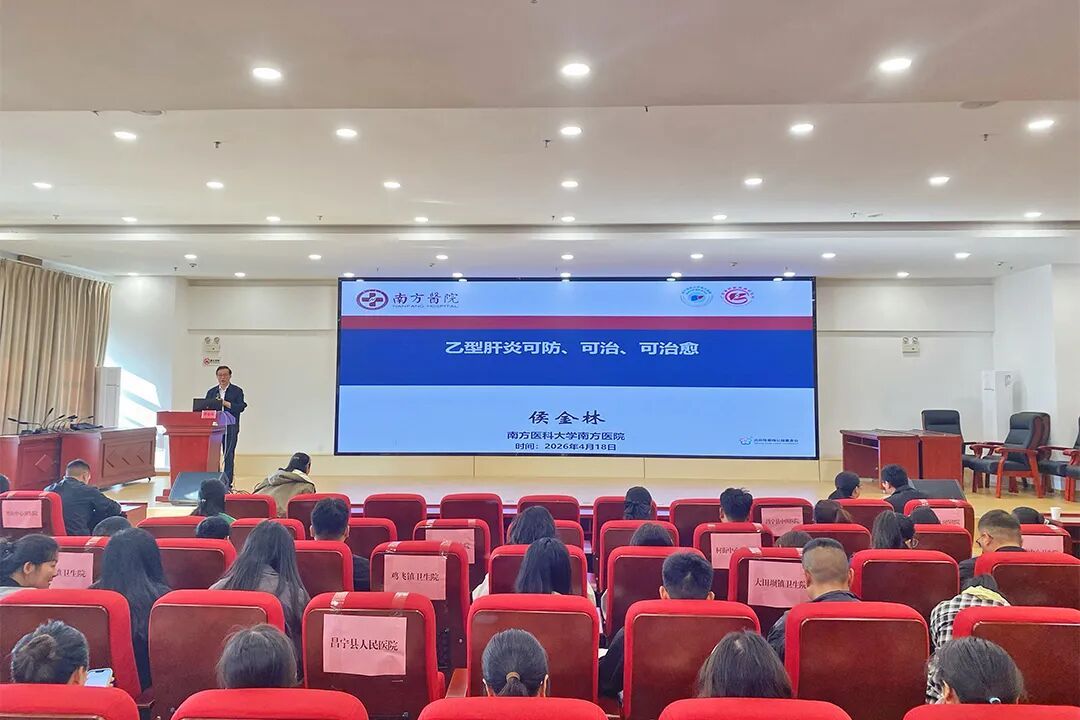 本次培训特邀国内知名专家——广东省肝脏疾病研究所所长侯金林教授及县人民医院建站专家联勤保障部队第九二〇医院感染科主任马世武教授及其团队亲临授课。课程聚焦基层防治实际,构建“理论—门诊—实战”三位一体教学体系,系统讲授乙肝防治前沿、乙肝治愈门诊建设经验,并结合骨感染等病例开展实战分析,全面提升学员早期识别、规范诊疗与健康管理能力。参训人员覆盖县、乡、村三级医疗卫生网络,汇聚医共体各单位临床骨干、公卫管理人员及相关医务人员。