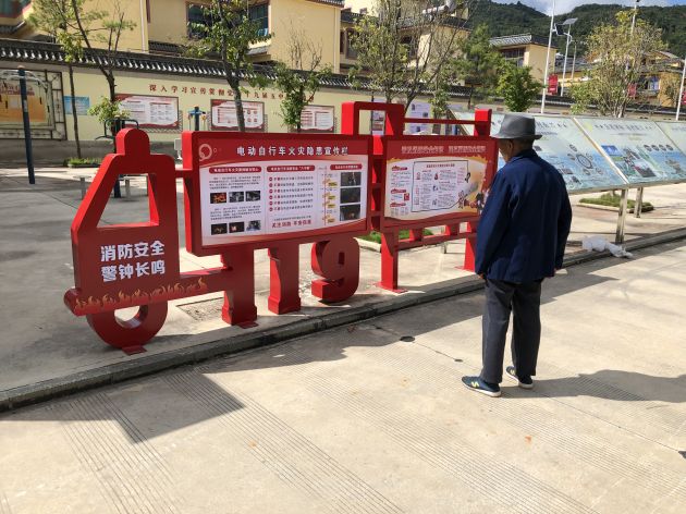 生动活泼的消防员形象、通俗易懂的消防宣传栏、带有消防提示的垃圾桶、消防知识宣传廊分布于公园各处,错落有致,格外醒目。常在公园锻炼的一位老爷爷说:“今天来广场转了一圈、玩了一玩,发现广场跟以前不一样了,在里面转一转学到了很多消防知识,挺好的。”