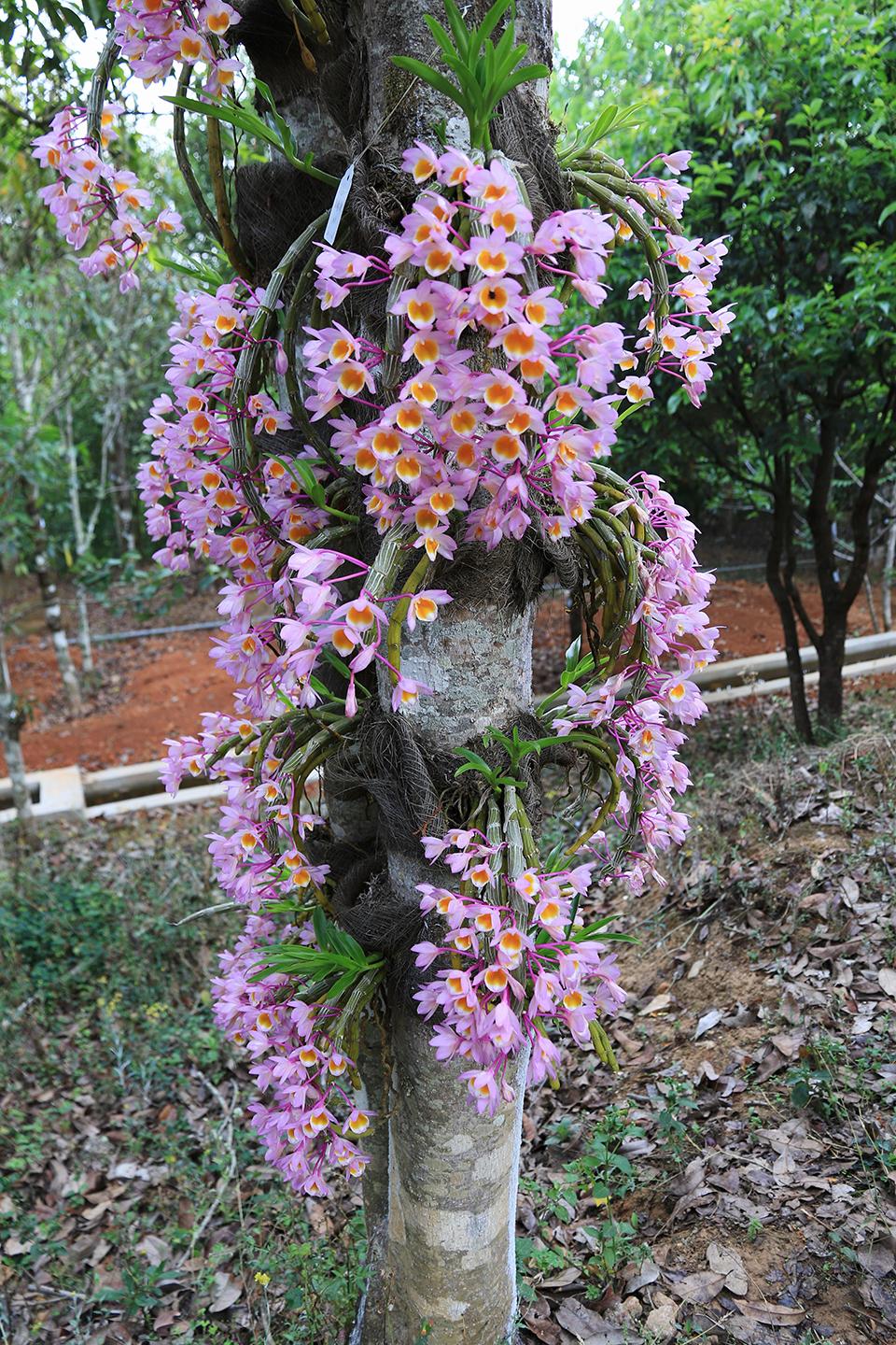 时值4月暮春时节,走进保山市龙陵县石斛研究所“花园式”的种质资源保护研究中心,不同品种的石斛花陆续开放,省林业和草原科学院与该所技术人员正围在树旁对石斛花进行品种鉴定。
