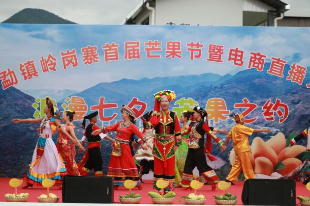 此次芒果节设有文艺汇演、芒果王评选、电商直播大赛、青年交友活动、果园采摘等丰富多彩的活动,供游客参与体验。活动现场秩序井然,上午10时,活动在文艺汇演歌舞《山间情歌》中拉开序幕,舞蹈《唱起来跳起来》、《芒果走秀》、《山美水美的地方》、《我们的寨子》等精彩节目轮番上演,充分展示了岭岗寨人民依托芒果产业,走出一条产业富民的新路子,表达果农对新时代美好生活的热爱和向往,赢得观众的阵阵掌声。