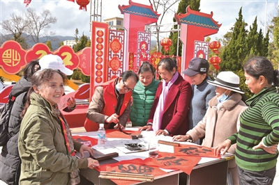 昌宁县老年大学志愿者免费为群众写春联 张赛芹 摄
