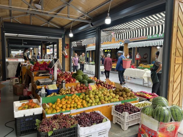 改造后的农贸市场重新划行规市,整合业态分布,按分类和分区优化经营区域,比如,在肉类区配置了风冷柜,更好保障鲜肉品质;水产区配备了定制化鱼池,隔离宰杀区域,排污排水一应俱全;蔬菜区配置了标准化菜筐,菜品陈列更加规整和齐全;熟食区配置了一体式玻璃隔断,生熟分区,更加安全、卫生。此外,还引进了先进的智慧农贸体系,实现全方位数字化覆盖,目前,共有商铺138间,摊位224个。良好的通风采光、宽敞的经营过道、整洁的市场环境、充足的停车位置,为广大市民营造了更加时尚、舒适、健康的农产品交易场所。正在买菜的市民张美丽女士说,原来市场里脏、乱、差,现在不一样了,就像逛超市一样,进来就有焕然一新的感觉,到处干干净净的,心情也愉悦很多。