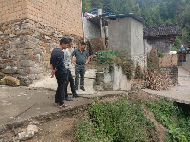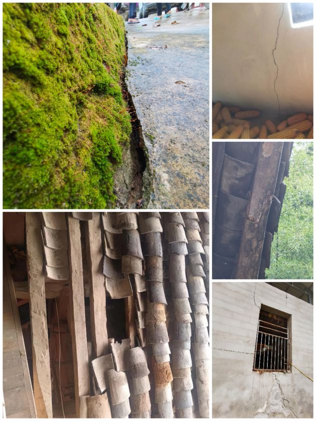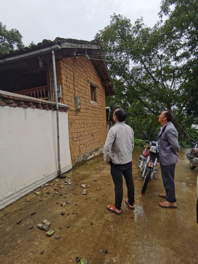 9月23日10时47分,龙陵县发生4.5级地震,震中位于镇安镇正平村,距离镇宝村4公里,震感明显。“这么明显的震感,我从1976年龙陵大地震到现在才遇到了。当时一摇三晃的感觉,又听到‘噼里啪啦’瓦片掉下来的声音,挺吓人的。”镇宝三组村民范吉昌心有余悸。地震时,村两委、驻村工作队的人员正在办公,惊魂未定,首先想到的是全村8个小组的情况。他们分工协作,震灾巡查一组负责询问每个小组长关于各个小组的灾情并巡查里片小组和学校,巡查二组负责在网格群、工作群发出预警,提醒及时报告灾情并巡查外片小组。大家跨上摩托,分头行动。镇宝三组村民段杏芝第一个报告了房屋受灾,巡查一组的村干部、驻村工作队员第一时间赶到现场,首先进行人员安抚,确定无伤亡情况后,拍照记录了前后门房屋瓦片滑落的情况。“发生地震时,我们迅速反应,带领孩子们把课本顶在头上,及时躲到课桌下,然后有序撤离教室,到达安全地带。还是有许多孩子被吓哭了。”镇宝小学的老师介绍说。刚好现场被吓哭的是刚才报告灾情的段杏芝的孩子。