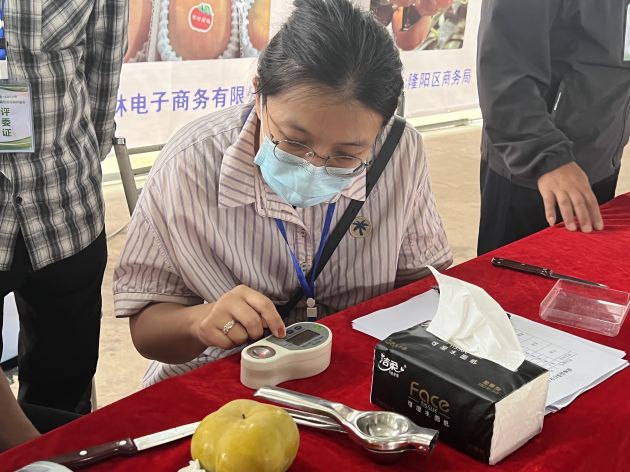 在当天的“果王”评选中,评委从果品的外观、色泽、重量、糖度和口感五个方面进行了认真细致的专业评判,评选出果王奖一名,由农户赵坤摘取桂冠,兰学凤、胡晓龙、刘先等6户分获一、二、三等奖,杨云勇等10户获优质奖。获得本次赛事二等奖的种植户胡小龙说,他们家两代人都是靠种植甜柿发家致富的,种了大概有40多年,今天他获奖,心里也是非常高兴和激动,党的二十大即将召开,他相信在党的领导下,老百姓的日子一定会像他种的柿子一样红红火火。