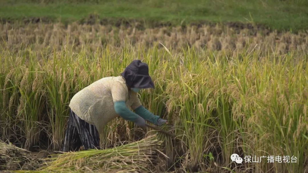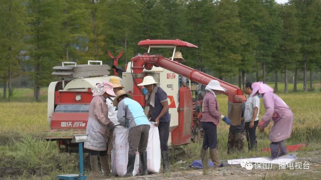 秋天的田野里,到处都是忙碌的身影,一台台小型收割机在稻田里来回作业,割稻、脱粒、装袋一气呵成。田园镇勐廷社区村民马芬今年种了1.4亩水稻,请了一台收割机来帮助收粮,仅仅40分钟就完成了收割,省时省工又省力。