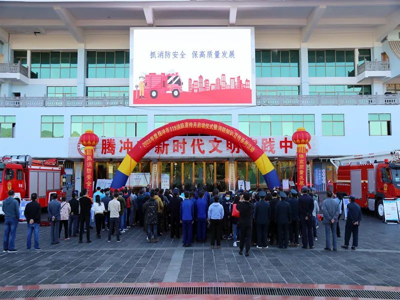 为进一步提高全民消防安全素养,普及消防安全知识,推动社会各界关注消防、学习消防、参与消防。11月9日上午,腾冲市人民政府安全生产委员会联合腾冲市消防安全委员会在三桥文化广场举行腾冲市2022年“11.9”消防宣传月活动启动仪式。市消防救援大队、应急管理局、森林消防中队、公安局、交警大队、市场监督管理局、气象局、防震减灾局、腾越街道、西源街道分管领导出席仪式并参加联合宣传。