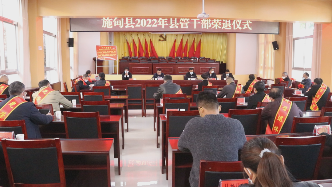 12月21日,施甸县举行2022年县管干部荣誉退休仪式,进一步增强退休干部的政治荣誉感、组织归属感、生活幸福感。