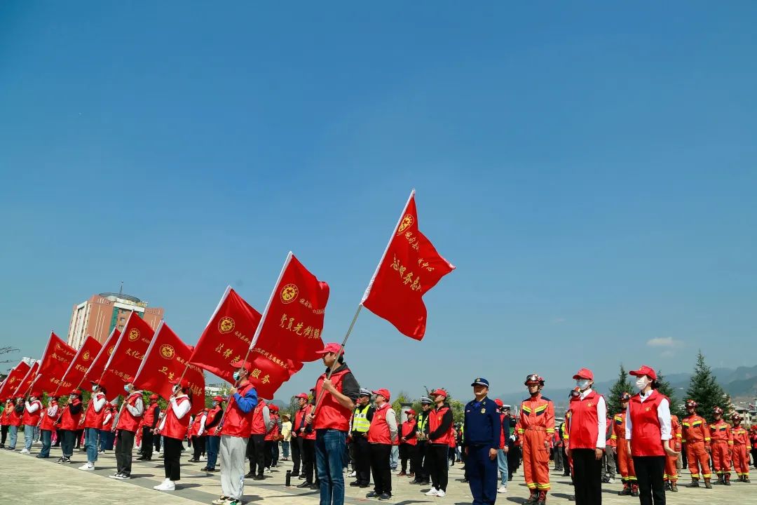 在施甸县新时代文明实践中心,志愿服务队队旗迎风飘扬,身着红马甲、头戴小红帽的志愿者整齐列队。启动仪式现场宣读了学雷锋志愿活动月“百家万人行”学雷锋志愿活动计划、为12支志愿服务队授旗、志愿者代表做志愿服务宣誓后,在“学习雷锋好榜样,忠于革命忠于党......”的嘹亮歌声中,志愿服务活动拉开了序幕。