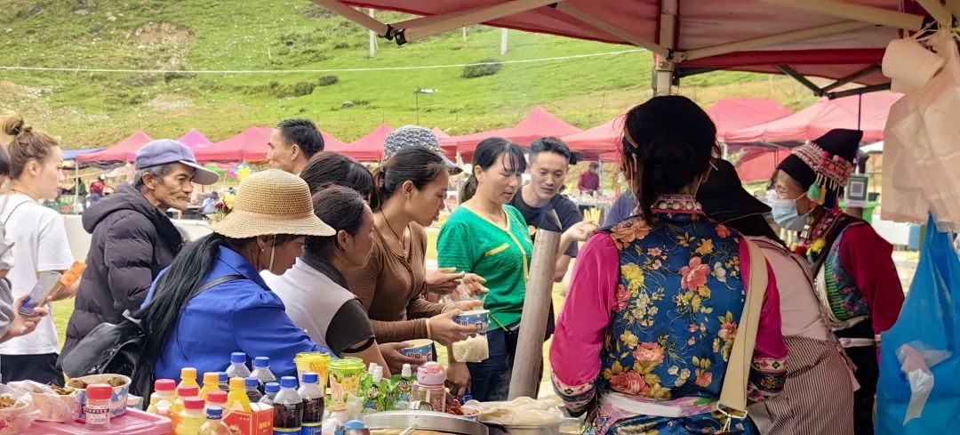 为了让草皮街更吸引游客,哈寨一组党支部书记杨美芹每到周末就带着10多个布朗族群众到草皮街义务表演布朗族歌舞,让更多游客了解布朗族文化。拇指大的羊角小洋芋、金黄色的面果儿饭、白嫩嫩的冬蜂蜜、高山羊肉吸引着游客纷纷驻足购买、品尝。每到周末,来自县内外的游客缕缕不绝,成为县内外市民周末打卡地。哈寨村第一书记杨自卫说:“2022年4月,哈寨村就通过村民议会尝试着在五一节期间举办草皮街活动,展示布朗族特产和布朗族文化。五一后,草皮街就越办越火,很多游客周末都想着到草皮街看看四大山风景、购买点布朗族特产、感受布朗族文化。草皮街运行一年来接待游客达到近百万人次。特别是春节期间,草皮街游客每天可达三五万人。”
