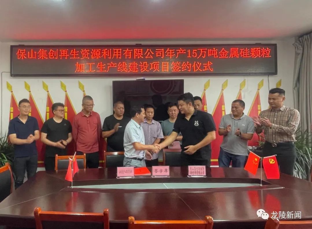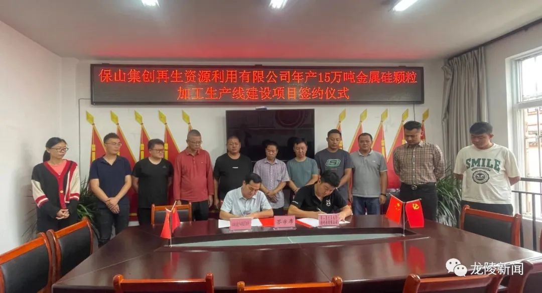 7月24日,云南龙陵产业园区与保山集创再生资源利用有限公司举行年产15万吨金属硅颗粒加工生产线建设项目签约仪式。