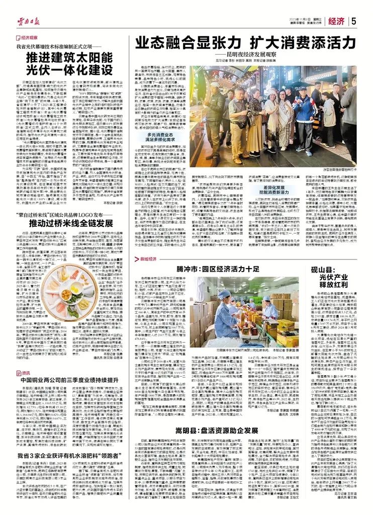 云南腾冲经济技术开发区是全省唯一一个“十四五”国家重点支持的县城产业转型升级示范园区。近年来,云南腾冲经济技术开发区结合区位、资源等优势和特点,明确提出创建绿色产业示范区、跨境合作示范区、创新引领示范区的目标定位。截至目前,腾冲经济技术开发区纳入统计的工业企业有华宇生物、云台酒业、晨光生物、凯诺制药、新绿色药业等89户。2022年,生物医药、绿色食品加工产业势头强劲,实现产值12亿元。