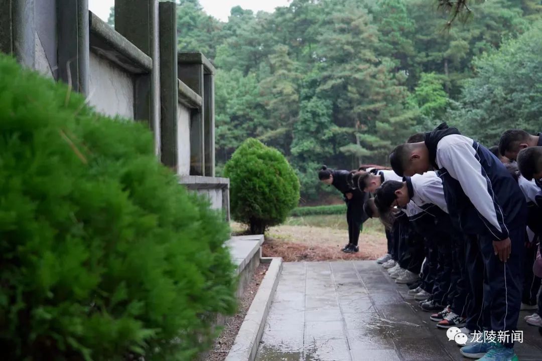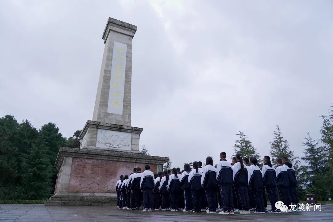 在松山抗战遗址的中国远征军雕塑群和中国远征军第八军第103师抗战阵亡将士公墓前,同学们肃穆而立,集体对英烈三鞠躬,敬献鲜花,追忆他们的丰功伟绩,表达无限的哀思和崇高的敬意。
