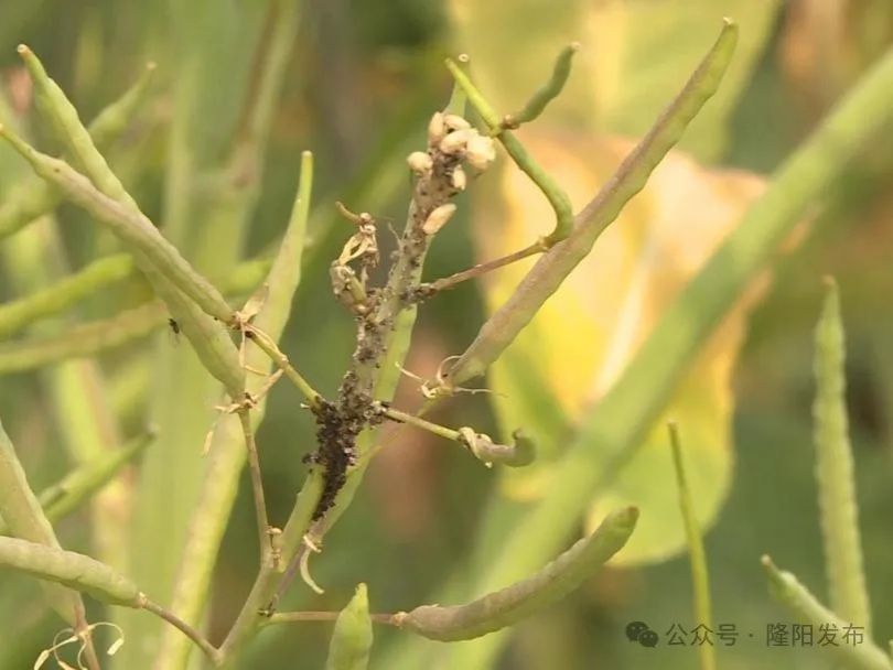 放了蚜茧蜂以后,油菜花长得很好,这些蚜虫也死了,以后的产量也能提高很多。