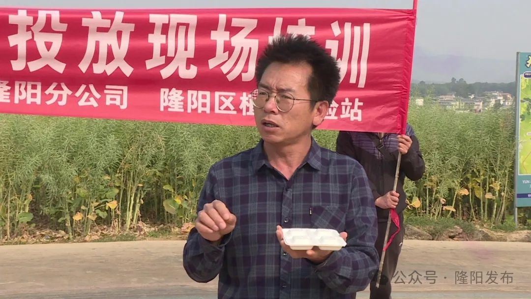 为有效推广这种“以虫吃虫”的绿色防控方法,区农业农村局植保站加强宣传培训,每年到油菜种植区开展培训10多次,增强老百姓对蚜茧蜂的认识和生态环保意识。