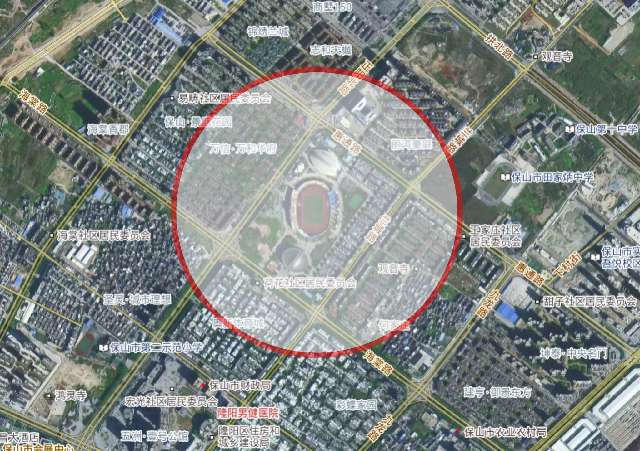 以保山奥林匹克中心足球场为中心,水平半径2公里以内,垂直真高120米及以下,划设为临时管制空域范围。