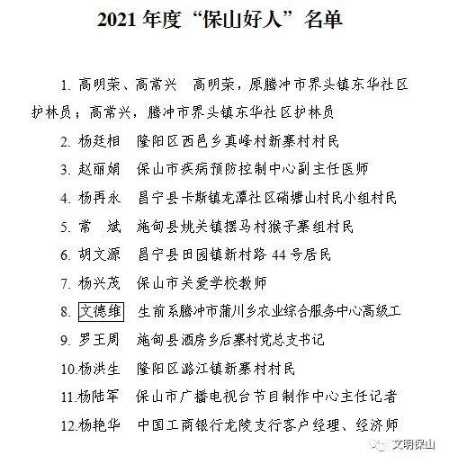 2021年度“保山好人”
